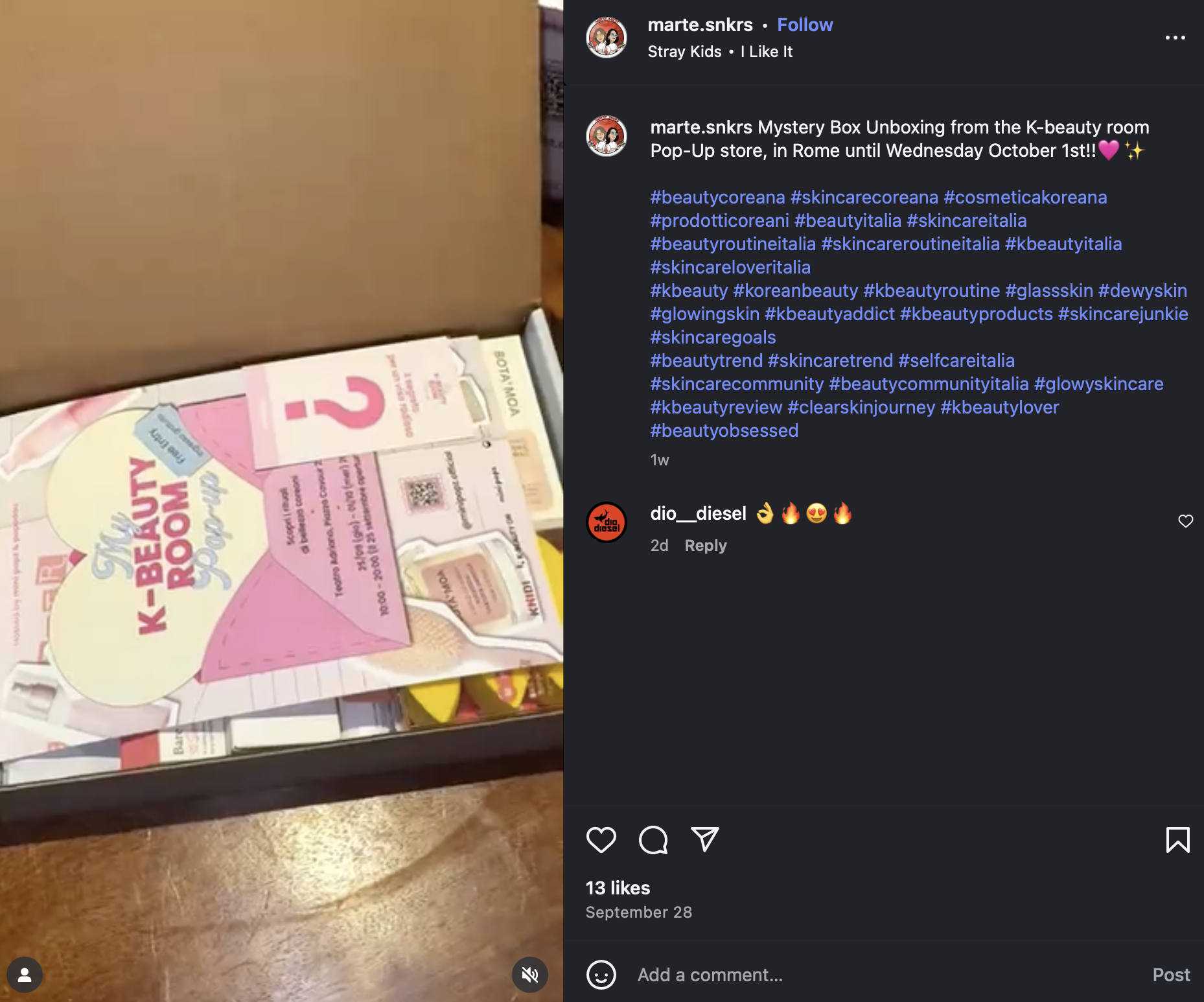 < 미스터리 박스를 언박싱 하는 인스타그램 영상 - 출처: 인스타그램 계정(@marte.snkrs) >